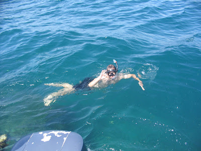 Letzter Stop war dann Bamboo Island, wo man auch noch haette versuchen koennen im 40cm tiefen Wasser zu schnorcheln - zwecks Ebbe. Allerdings muss man ja nicht unnoetig Korallen kaputt machen bzw in Seeigel schwimmen. Daher haben wir das dann gelassen und lagen einfach faul in der Gegend herum. Schlussendlich folgte noch der sehr holprige "ride" zurueck zum Pier und die Heimfahrt. Das Ganze war schon recht schoen gemacht, aber halt schon alles sehr aufbereitet, dass man sich ja keine Muehen machen muss. Ich bevorzuge glaube eher Sachen wo man sich etwas mehr bewegt, als nur vom Strand zum Buffet - aber wie gesagt, es war trotzdem sehr schoen. Vorallem landschaftlich haben die Inseln mit ihrem Azurblauen Wasser, den Klippen und den ewig vielen Baeumen schon sehr viel zu bieten fuers Auge.
