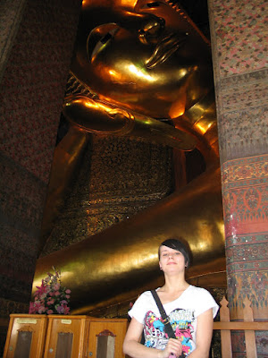 Danach ging es zu Fuss weiter zum naechsten Tempel (Wat Pho) mit dem groessten liegenden Buddha (46 m lang und 15 m hoch).