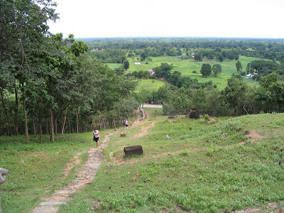 Wir sind an Zuckerrohr-, Reis- und Bananenfeldern vorbeigefahren, durften Kuehe beim Grasen beobachten und vor uns lagen Berge. Insgesamt sind wir sicherlich ueber 30 Minuten gefahren um unser eigentliches Ziel - einen Tempel auf einem Berg - zu erreichen. Am Fusse der Berges angekommen, mussten wir uns in ein Buch mit Namen, Hostel, naechstem Reiseziel usw. eintragen. Vielleicht damit abends niemand auf dem Berg vergessen wird??